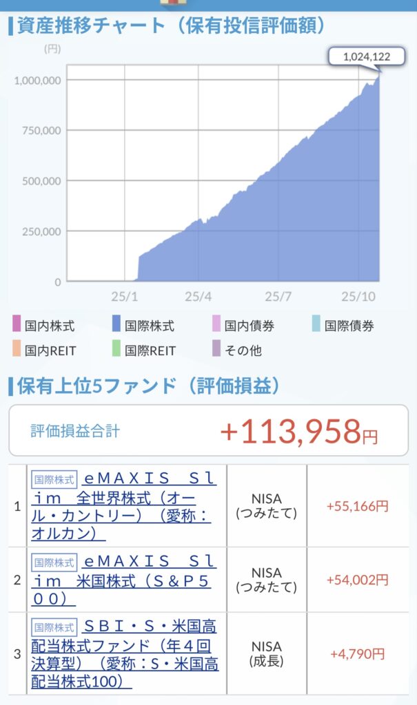2025/1に積立を開始し、1つの節目として達成感があります。