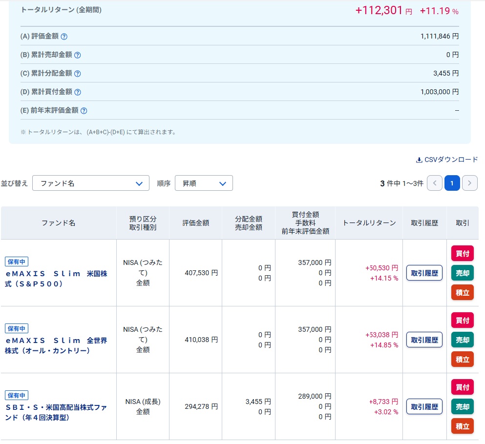 当サイトでは、以下3つの投資信託をNISA枠で毎日積立しています。