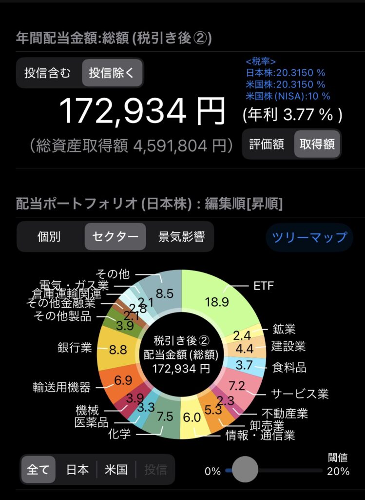 そちらも加えると年間18万円程度の配当金は受け取れるのではないでしょうか。